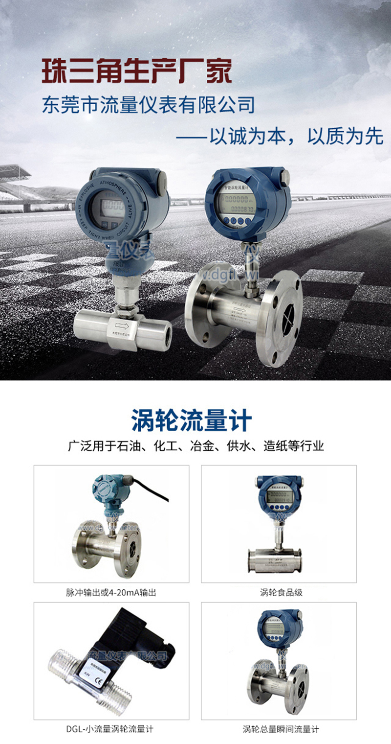由于该型流量计集温度、压力、流量传感器于一体,在线跟踪检测介质温度和压力并进行自动补偿、压缩因子修正运算,因此具有优良的低压和高压计量性能,特别适用于各种单相气体的测量,如天然气等气体的精确计量。根据用户的不同需求,我公司可提供不同精度等级的涡轮流量计。