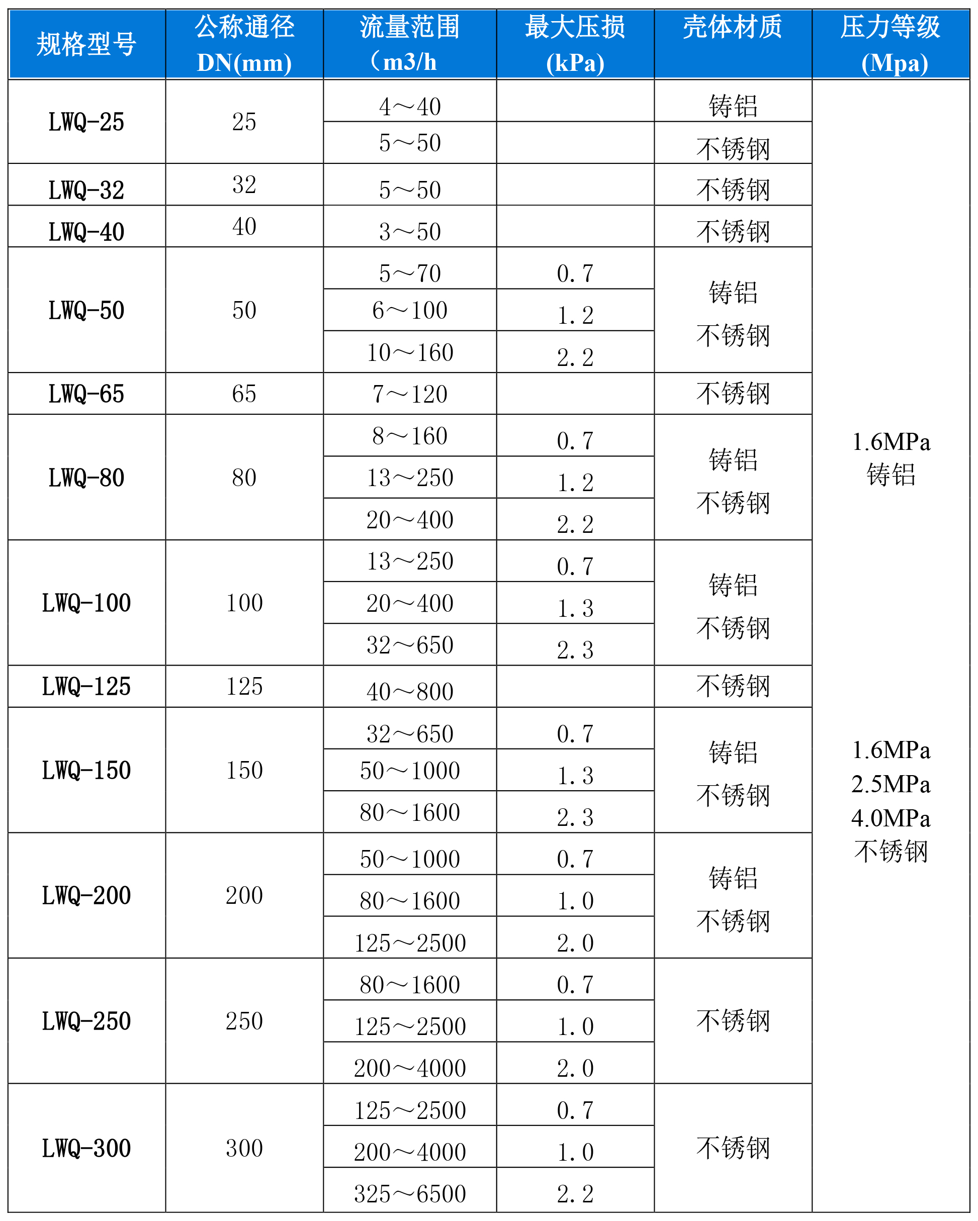 3.3 流量计型号规格、基本参数